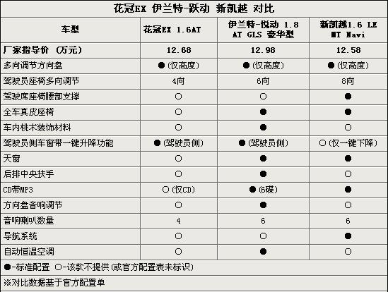 售價12.98萬的伊蘭特悅動提供了更大排量的1.8L發(fā)動機(jī),以及使用更加便捷的4速自動變速箱,在車輛的動力性方面較對手更有優(yōu)勢。新凱越雖然沿用了老款的1.6L發(fā)動機(jī),但是據(jù)廠家透露新款車型在不影響動力的情況下,油耗將比老車型將下降3%。