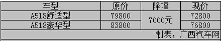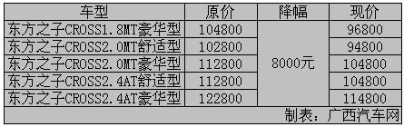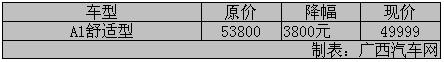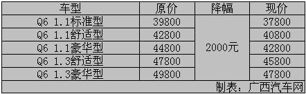 (廣西汽車網(wǎng) 訊)編輯近日在廣西鑫廣達(dá)奇瑞經(jīng)銷商處再得好消息,除了QQ6的價格比較穩(wěn)定之外,其他系列部分買斷車型如東方之子Cross、奇瑞瑞虎SUV、奇瑞A518和奇瑞A1等都有大幅度優(yōu)惠,其中東方之子降8000元,瑞虎SUV和A518降7000元,A1也由原來的53800降到49999元。以下是該店所銷售的奇瑞各系列的最新報價表: