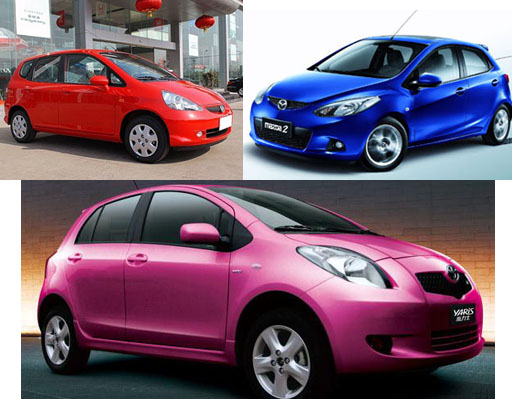 飛度(上左)、馬自達(dá)2兩廂(上右)、雅力士(下)