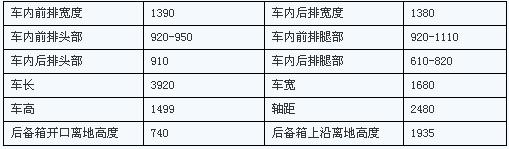 車輛空間信息(單位:mm)