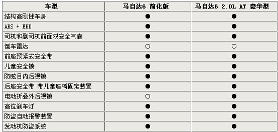 這款新車(chē)雖然是簡(jiǎn)化版車(chē)型,但是其在被動(dòng)安全方面的配備還是比較齊全的,簡(jiǎn)化版馬自達(dá)6采用了高強(qiáng)度車(chē)身和前排雙安全氣囊,為消費(fèi)者提供了一個(gè)安全的駕駛環(huán)境。在主動(dòng)安全方面,ASB+EBD等電子安全系統(tǒng)也可以在這款車(chē)上找到。