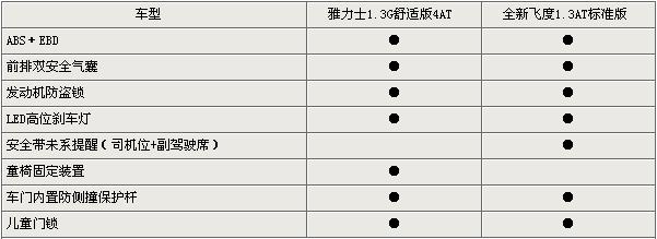安全方面的配置,兩款車都大致相當(dāng),如:ABS、EBD、前排安全氣囊均都是標(biāo)準(zhǔn)他們的標(biāo)準(zhǔn)配置,而且高位剎車燈和發(fā)動機防盜鎖也是新飛度和雅力士的基本裝配。只是在一些小的細節(jié)方面新飛度和雅力士各有欠缺,如童椅的固定裝置在新飛度身上并沒有配備,安全帶未系提醒系統(tǒng)雅力士也沒很好的考慮到。
