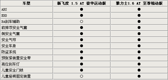 我們選取的兩款車型均是各自車款中的高配車型,所以各自的安全配置都比較全面。ABS 、EBD、6安全氣囊均為這兩款車型的標(biāo)準(zhǔn)配置。同時(shí)安全車身、預(yù)緊安全帶、高位剎車燈也保證了它們的行駛安全,但是仔細(xì)看下來,豐田雅力士還裝配了BA剎車輔助系統(tǒng),該系統(tǒng)利用傳感器感應(yīng)駕駛者對(duì)制動(dòng)踏板踩踏的力度與速度大小,從而使制動(dòng)力快速產(chǎn)生,減少制動(dòng)距離。在兒童保護(hù)方面,兩款車型均配有兒童安全門鎖,雅力士還配備了后排兒童座椅固定裝置。