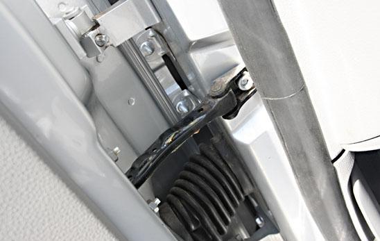 新寶來(lái)并為采用老款寶來(lái)的3段鉸鏈?zhǔn)浇Y(jié)合,改為圖上的拉桿,略顯單薄一些