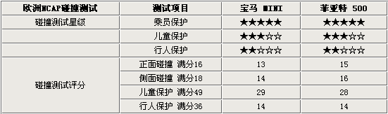 2.歐洲NCAP碰撞測(cè)試 碰撞成績(jī)對(duì)比: