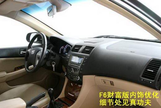 在模具打磨上F6財(cái)富版也更為精細(xì),部件的匹配度較08款有明顯提升:邊緣部位打磨平滑、結(jié)合部位縫隙縮小。F6財(cái)富版的精細(xì)還體現(xiàn)在細(xì)小之處:內(nèi)鑲金屬飾條拉手、前座椅加熱裝置等都精心設(shè)計(jì),提升整體檔次。