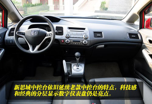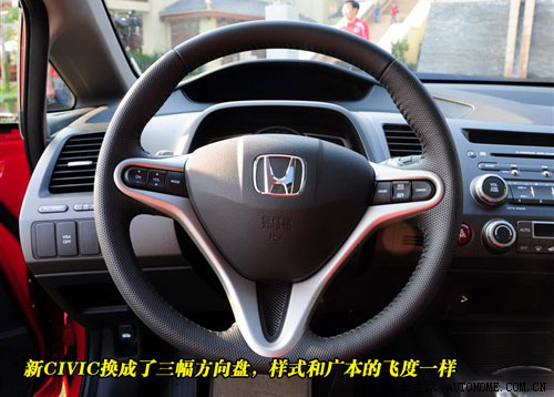 方向盤的樣式發(fā)生了變化,由原來的兩幅式方向盤改成現(xiàn)在和廣州本田飛度一樣樣式的三幅式方向盤,個人感覺這個方向盤的樣式更好看一些。該方向盤可以是多功能方向盤,但只出現(xiàn)在高配的兩款車型上(尊貴版和豪華版)。而且,在新思域的兩款高配車型上,還新加裝了方向盤上的換擋撥片,以宣揚(yáng)這款車的運(yùn)動化配置。