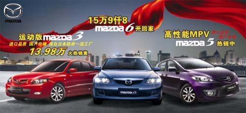 比如馬自達(dá)六,已經(jīng)賣了5年了,除了整車技術(shù)不斷更新,維持世界最先進(jìn)技術(shù)以外,外形幾乎沒(méi)有改變,但你認(rèn)為他過(guò)時(shí)嗎?一點(diǎn)也不!不僅不過(guò)時(shí),相反比目前市場(chǎng)上的流行款式還要好看!原來(lái)只做私家車,現(xiàn)在也逐漸進(jìn)入公務(wù)車的領(lǐng)域。另外去年5月份降價(jià)后,幾乎和A級(jí)車一個(gè)價(jià)位,銷售量和市場(chǎng)占有率2008年為全國(guó)第4位。這個(gè)月我們南寧店銷售了100臺(tái)。