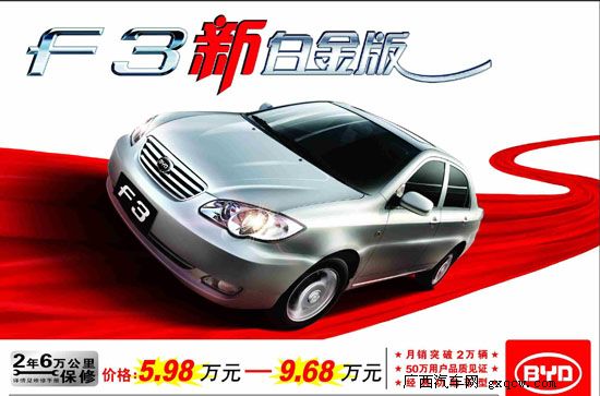 比亞迪經(jīng)典車型F3今年銷量異;鸨,從年初的月銷萬輛到穩(wěn)居2萬輛俱樂部,再到創(chuàng)造歷史的月銷破3萬,截止到12月1日F3今年累計銷量已突破25萬輛,有望爭奪全年單一車型銷量總冠軍,可以說F3今年的銷量可謂是直線攀升,勢不可擋。 臨近年末,F(xiàn)3系列又推出了F3升級版——F3新白金版,力求再次突破自己,為年底銷量沖刺助力。