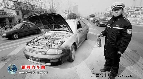 如果一切預(yù)防措施都采取了,可汽車還是著了,司機也只能自認倒霉。假如在發(fā)現(xiàn)起火時火勢還很小,應(yīng)立即取出滅火器滅火。此時要注意,別貿(mào)然打開前機器蓋,應(yīng)用滅火器沿機器蓋的縫隙向里面噴射。即使沒有滅火器,而車子旁邊就是小河,也堅決不能潑水滅火。由于車內(nèi)電路眾多,潑水不僅很難滅火,而且容易造成更大危險。