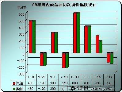 2009年我國汽柴油價格累計上漲了1520元和1390元,漲幅均為27%左右。而同期國際市場的原油價格,從年初的每桶40美元左右,上漲到目前每桶73美元左右,漲幅達到了82.5%。