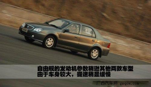 自由艦發(fā)動機的參數(shù)指標明顯不如夏利N5和新羚羊,最大扭矩輸出為5200轉(zhuǎn),低速扭矩的表現(xiàn)不盡人意。另外,自由艦車身大于其他兩款車型,靜止提速和運動中提速都略遜于其他兩款車型。
