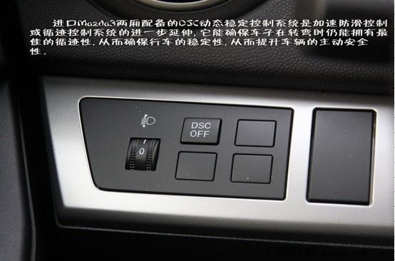 在主動(dòng)安全配置方面,進(jìn)口Mazda3兩廂的配置相當(dāng)豐富。高位剎車燈以及外后視鏡轉(zhuǎn)向燈則為行車安全提供了更多保障。ABS、EBD等常見配置自然是一個(gè)都不能少,而BA電子輔助制動(dòng)體統(tǒng)以及DSC動(dòng)態(tài)穩(wěn)定控制系統(tǒng)更是成為了2.0L車型的標(biāo)準(zhǔn)配置。談到DSC可能有人會(huì)覺得陌生,其實(shí)他的功能等同于ESP,只是稱謂不同而已。這套系統(tǒng)為加速防滑控制或循跡控制系統(tǒng)的進(jìn)一步延伸, 它能確保車子在轉(zhuǎn)彎時(shí)仍能擁有最佳的循跡性, 從而確保行車的穩(wěn)定性, 從而提升車輛的主動(dòng)安全性。