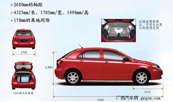 從空間參數(shù)上來看,F(xiàn)3R金鉆擁有長4325mm、寬1705mm、高1490mm的大車身,連同2600mm可以與同級三廂車相媲美的軸距,營造出兩廂車中寬綽舒適的內(nèi)部駕乘空間。360L的后備廂容積可以容納日常所需物品以及外出郊游時需要攜帶的帳篷、行李等,偶爾有個假期,一家人坐上F3R,外出去風景宜人的郊區(qū)自駕游一番,其樂融融。
