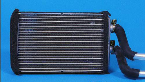 冷凝器和蒸發(fā)器——它們雖然叫法不一樣,但結構類似。它們都是在一排彎繞的管道上布滿散熱用的金屬薄片,以此實現外界空氣與管道內物質的熱交換的裝置。冷凝器的冷凝指的是其管道內的制冷劑散熱從氣態(tài)凝成液態(tài)。其原理與發(fā)動機的散熱水箱相近(區(qū)別只在于水箱的水一直是液態(tài)而已),所以它經常被安裝在車頭,與水箱一起,共同享受來自前方的習習涼風?傊淠魇悄睦餂隹炷睦锶,以便其散熱冷凝。蒸發(fā)器與冷凝器正好相反,它是制冷劑由液態(tài)變成氣態(tài)(即蒸發(fā))吸收熱量的場所。