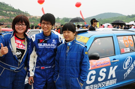 左為力帆320車(chē)隊(duì)冠軍車(chē)手王晶晶 中為作家車(chē)手韓寒