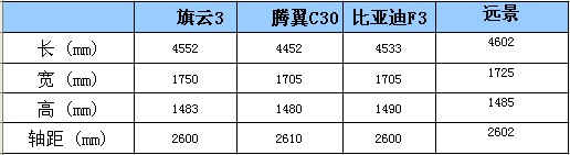 其中車寬最大的是旗云3,這讓其橫向空間距離使人滿意,其次是遠景,接下來的騰翼C30和比亞迪F3基本持平。后備箱來說,四車都完全夠用。旗云3得益于平直車尾,不僅開口大,空間也讓人滿意。遠景和騰翼的后備箱空間也不錯,都超過了500升容積。比亞迪F3的后備箱中規(guī)中矩,家用也足夠。