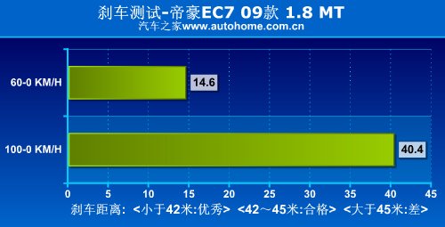 實(shí)際上對(duì)這么一款純粹家用舒適的車來說,動(dòng)力方面的要求已經(jīng)成為用戶需求的次要因素,他們更多關(guān)注的是經(jīng)濟(jì)性和舒適性。帝豪EC7的這款1.8升發(fā)動(dòng)機(jī)在油耗方面的表現(xiàn)比較令人滿意,實(shí)測(cè)平均8.5L/百公里的水平是同級(jí)中的佼佼者了。盡管沒有出色的動(dòng)力(0~100km/h加速時(shí)間11.5秒),也沒有復(fù)雜的后懸掛(簡單的前麥弗遜后拖曳臂),同時(shí)也沒有所謂的操控性,帝豪能夠打動(dòng)你的就是和諧的外形、豐富的配置、有明顯進(jìn)步的細(xì)節(jié)做工以及不錯(cuò)的經(jīng)濟(jì)性,哦對(duì),除此之外還有非常不錯(cuò)的剎車成績,100~0km/h剎車距離40.4米。