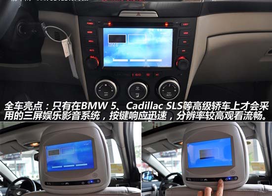 前排增加了影音導(dǎo)航系統(tǒng),人性化界面讓導(dǎo)航更為簡易,后排增添了豪華影音系統(tǒng)兼容各種播放模式 ,讓原本枯燥的路上時間變成妙趣橫生的旅途。
