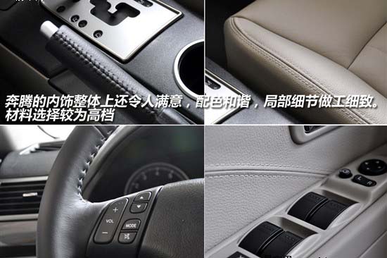 奔騰的內(nèi)飾整體上還令人滿意,配色和諧,局部細節(jié)做工細致。采用溫馨之感的米色內(nèi)飾,豪華感較好。