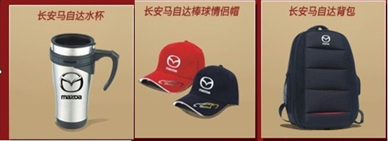 付費(fèi)金額大于800元而小于1500元,可以獲得“馬自達(dá)水杯”一個或“馬自達(dá)棒球情侶帽”一對;