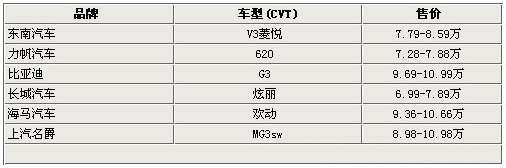 通過上面的表格我們可以看出,這6款搭載CVT變速器的車型都是大家很熟悉的,也許正是因為它們都比較熱銷,所以廠商為了滿足消費者的需求才為它們裝備了CVT。6款車當(dāng)中東南V3菱悅、MG3sw和海馬歡動屬于比較偏向運動的車,而長城炫麗則是一款小女孩十分鐘愛的一款可愛型兩廂車,剩下的力帆620和比亞迪G3與其他4款相比更顯大氣和穩(wěn)重。
