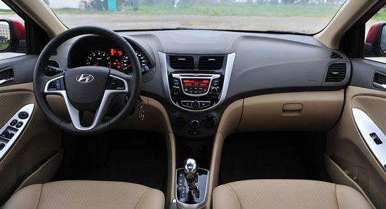 瑞納的內(nèi)飾線條十分豐富,這無疑提升了整體的層次感,自發(fā)光形式的儀表盤簡潔大方,多功能行車電腦可以提供日常所需的信息。中控臺(tái)采用U字形設(shè)計(jì),配以黑色鋼琴烤漆,顯得很有品位。還記得i30那晃眼的藍(lán)色屏幕背景光么,在瑞納上變成了暗紅色,看起來柔和多了,并且提高了整體檔次。