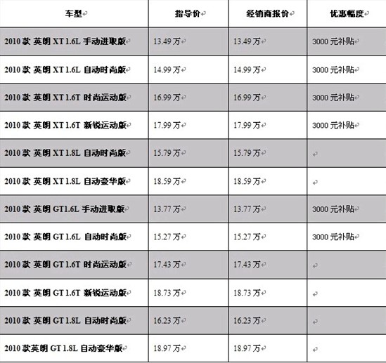 廣西別克詳細(xì)價(jià)格表: