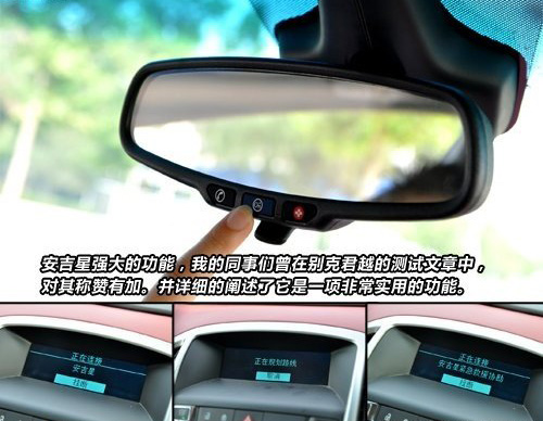 通用配備的安吉星是個十分貼心的配置,它主要通過后視鏡和中控顯示屏實現(xiàn)。這套安吉星系統(tǒng)借助GPS全球衛(wèi)星定位系統(tǒng)和無線通信技術,別看小小的行車顯示屏,在安吉星啟動時會出現(xiàn)導航鍵頭來提示駕駛者應走的行車路線,同時也為車主提供“碰撞自動求助”、“緊急救援”等六大類14項服務。安吉星OnStar全時在線助理系統(tǒng)的引入,不僅操作簡單,而且非常具有實用性。
