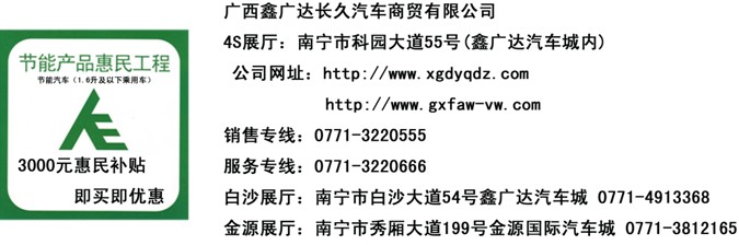 為地球贏環(huán)保,為自己省3000!廣西鑫廣達一汽-大眾節(jié)能汽車,即買即優(yōu)惠!