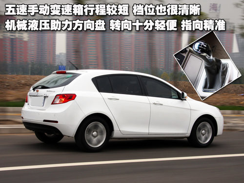 五速手動變速箱行程較短,掛當(dāng)時的清晰度很好。低檔位行駛時,帝豪EC7-RV表現(xiàn)出很強烈的動力輸出,深深踩下油門,發(fā)動機開始暴躁的咆哮,這只是一種夸張的形容...不過給人最直接的感覺就是,的確很有勁。方向盤配備了機械液壓助力,轉(zhuǎn)向十分輕便,指向性也比較精準(zhǔn)。