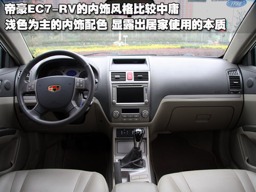 帝豪EC7-RV的內(nèi)飾風(fēng)格比較中庸,并無什么設(shè)計方面的新穎之處,樸實易用也許就是它最大的亮點。以淺色為主的內(nèi)飾配色,顯露出居家使用的本質(zhì),動感在內(nèi)飾方面并沒有什么體現(xiàn)。