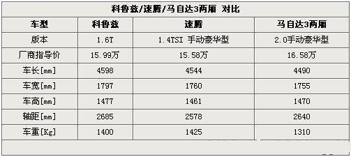 車身尺寸方面,三款車型中科魯茲的2685mm軸距最大,整車的長寬高也都是第一名,這點讓科魯茲信心十足。但出于運動的考慮來看,長軸距可能會帶來不夠干凈利落的轉彎指向性,需要更扎實的地盤實力才能得到平衡,所以速騰和新馬自達3兩廂從這點看來具有一定運動特性,各有千秋。