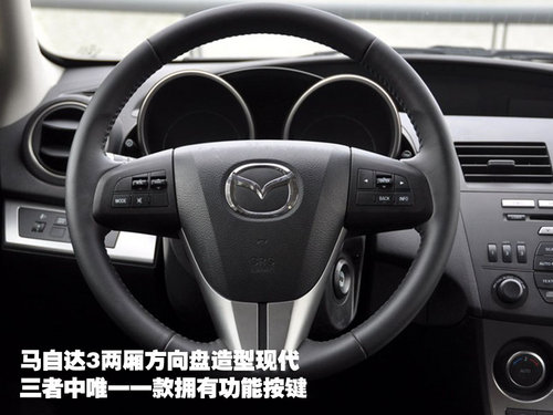 方向盤(pán)的設(shè)計(jì)能給駕駛者最直觀的運(yùn)動(dòng)感受,但配置還是會(huì)讓人覺(jué)得感覺(jué)更加值得。新馬自達(dá)3兩廂方向盤(pán)造型突出時(shí)代感,但常規(guī)的三輻設(shè)計(jì)心意寥寥,亮點(diǎn)在于大量加入的多功能按鍵,使用那個(gè)方面有安全?启斊澰谡_握姿的位置采用打孔設(shè)計(jì),大拇指凹陷的細(xì)節(jié)處理讓人感覺(jué)是在駕駛一款賽車(chē)。速騰的方向盤(pán)造型有些單調(diào),希望近期改款以后能跟高爾夫6一樣的那么令人激動(dòng)。