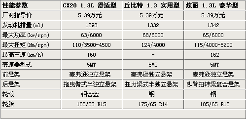 長安CX20與海馬丘比特、長城炫麗等家用兩廂轎車產品形成競爭,而且其手動舒適型與丘比特的手動實用型、炫麗的手動豪華型價格都是5.39萬元。接下來讓我們一起去了解一下,這三款價格相同的車型,究竟在性能和配置方面都有哪些區(qū)別。