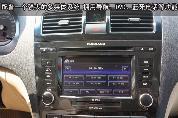 配置可以說是EC8的一個優(yōu)勢,多媒體顯示系統(tǒng),具有導(dǎo)航、DVD、藍牙電話等功能,這些操作同樣可通過方向盤上面的按鈕來操作。