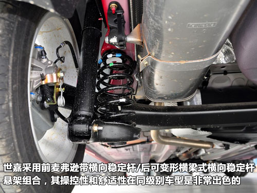 世嘉的官方材料中宣稱其懸架采用前麥弗遜式帶橫向穩(wěn)定桿/可變形橫粱式帶橫向穩(wěn)定桿的懸架組合,實(shí)質(zhì)上這套懸架仍然是麥弗遜式+拖曳臂懸架組合,但世嘉前懸在麥弗遜結(jié)構(gòu)的基礎(chǔ)上又增加了橫向穩(wěn)定桿,后懸在使螺旋彈簧代替扭桿彈簧的同時(shí)也增加了橫向穩(wěn)定桿,這一變化雖然舒適性無法與采用多連桿后懸架的車型相媲美,但是相對(duì)上一代車型舒適性已經(jīng)有一定的提升,而且世嘉的前后懸調(diào)節(jié)也偏向于操控性。這就保證了世嘉在操控性上的優(yōu)勢(shì)。