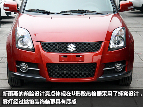 作為一款都市小車,你可以沒有非常出色的動力水平,但是一定要有具有強烈吸引力的外觀設計,或動感時尚,亦或乖巧可愛。2011款雨燕走的是動感路線,該車采用了全新家族式設計風格,用U形線條勾勒出前臉的主要區(qū)域。它的前大燈采用熏黑式處理、原本平實無奇的霧燈也被增加上鍍鉻裝飾,新造型看上去更加充滿生機。此外,雨燕的前保險杠、散熱格柵也進行了全新設計,蜂窩狀的格柵視覺效果很動感。