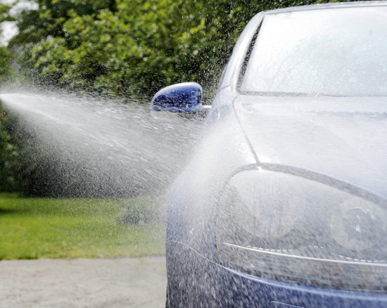 還有一部分車主喜歡自己洗車,在洗的時候,盡量將車身每一個部分都浸到水,一方面可順便沖掉臟污,另一方面,對于粘著性大的塵土也可用水加以軟化,在后面的擦洗步驟時便可節(jié)省不少力氣哦。在沖水時,切勿同時用布擦拭,避免摩擦塵土而刮傷車身。