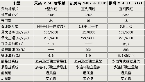 通過以上橫向?qū)Ρ龋梢钥闯鋈绿旎[、凱美瑞和雅閣三款車的排量都在2.4這個區(qū)間,但是在發(fā)動機(jī)形式方面它們卻完全不同。但是全新天籟、凱美瑞和雅閣三款車型均體現(xiàn)出了日系發(fā)動機(jī)傳統(tǒng)的特點(diǎn):性能良好、油耗經(jīng)濟(jì)。非常值得一提的是全新天籟,它采用的是被評為十佳的VQ發(fā)動機(jī),在配備上全新6速手自一體CVT變速箱,相對另外三款車型的來說全新天籟則更可以體驗(yàn)到駕駛的樂趣,百公里加速僅為9.8秒。全新天籟、凱美瑞和雅閣的制動系統(tǒng)都是前通風(fēng)盤后實(shí)心盤。