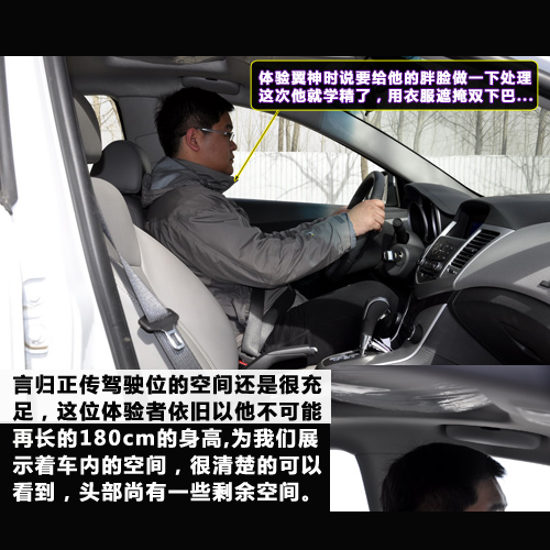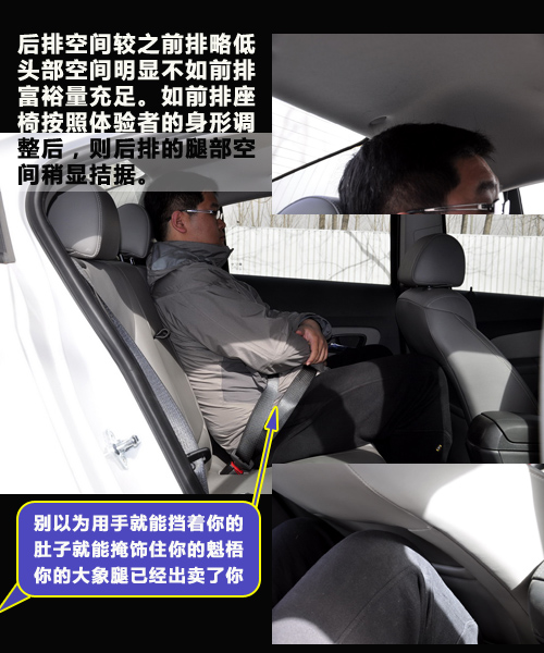 科魯茲前排空間相對(duì)還是充足的,身高180cm的旁人坐在其中,頭部尚有很大一塊的富余量。但后排空間就不那么樂(lè)觀了,頭部空間明顯沒(méi)有前排的充裕,如果前排同樣是180cm的駕駛者,調(diào)整座椅后,后排的膝部與座椅的空間不足一指。