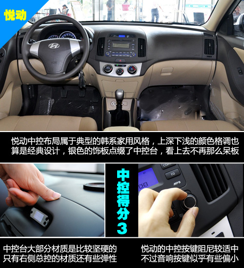 悅動的內(nèi)飾設(shè)計一改伊蘭特的偏向駕駛員側(cè)的設(shè)計風(fēng)格,雖然形式和格調(diào)較為常見,但細(xì)節(jié)做工和裝配工藝,還是比較不錯的,當(dāng)然這個級別的內(nèi)飾“用料”,都不會太大方,廉價的塑料材質(zhì)還是被大量的應(yīng)用在中控臺上。