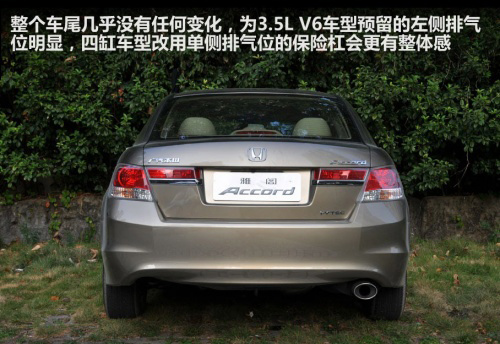 2011款雅閣的尾燈下方增加了鍍鉻裝飾,以求讓車(chē)尾的檔次感能有所提高,這一改變同樣應(yīng)用與其他國(guó)家的雅閣車(chē)型,本田技研的工程師告訴我們,本田在國(guó)內(nèi)車(chē)型上的標(biāo)準(zhǔn)是與全世界同步的。
