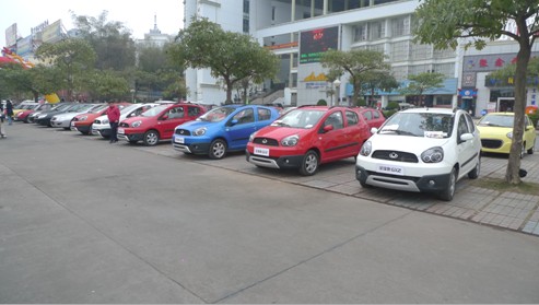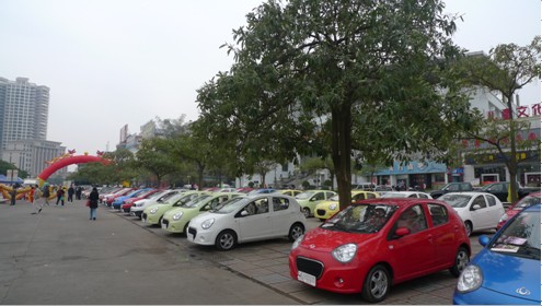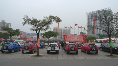 所有的新車整齊有序的齊賀開業(yè)慶典