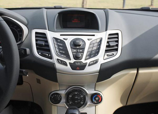 嘉年華中控臺頂部的顯示屏雖然面積不大,但是在小型車中還是不多見的,而且功能也比較豐富,包括時間、音頻、車輛信息和一些簡單功能設(shè)置。比如可以調(diào)節(jié)音效,收音機的選臺存臺,CD播放,車門未關(guān)閉等等。