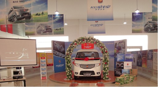 早上9:00,記者來到武漢長(zhǎng)源長(zhǎng)安汽車中環(huán)店,迫不及待的一睹長(zhǎng)安金牛星風(fēng)采。首先奮進(jìn)牛的車標(biāo)大大吸引眼球。