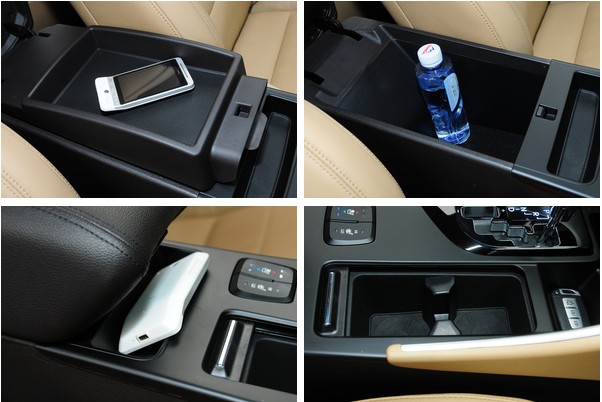 在車內(nèi)儲(chǔ)物空間方面新索納塔可謂做足了功夫,全車多達(dá)13處的儲(chǔ)物格大大方便了駕乘者擱置隨身物品,位于中控臺(tái)下部的儲(chǔ)物格空間十分可觀。
