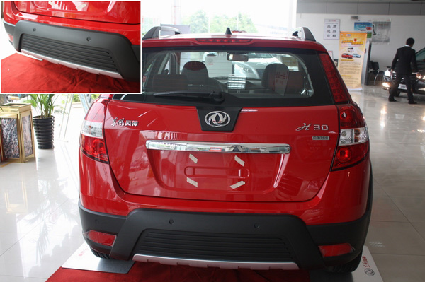 車尾底部同樣增加了形似護板的銀色裝飾,做到與車頭呼應。這也是跨界車所通用的套路,而車尾的CROSS標識表明了這臺車的身份——風神H30 CROSS。