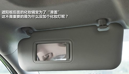 我們拍攝的車型帶有電動折疊反光鏡,現(xiàn)款在售的馬自達3的高配車型也同樣帶有,這個功能方便實用成本不高。另外我們發(fā)現(xiàn)遮陽板的化妝鏡換為了“滑蓋”,這不重要,我的疑問是為什么依然沒有化妝燈呢,因為我們看到路上很多馬自達3的車主都是女性,她們愛美的天性可能不僅僅需要個鏡子,還需要一盞化妝燈。