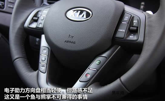 K5的電子助力方向盤沒有德系車那樣清晰的路感,但卻最大程度的發(fā)揮了日韓系車方向盤輕便的特點。電子助力力度會隨車速的加快而做出相應調整,但個人感覺告訴時方向盤還是有些輕,通常大家都會說這是飄,其實K5超過1.5噸的車重已經(jīng)很能說明問題了,所以這并不是車身本身飄,而是過于靈敏的方向盤給駕駛者的一種錯覺。
